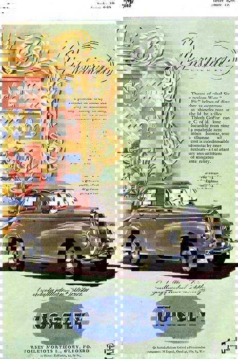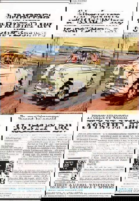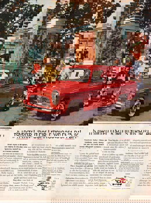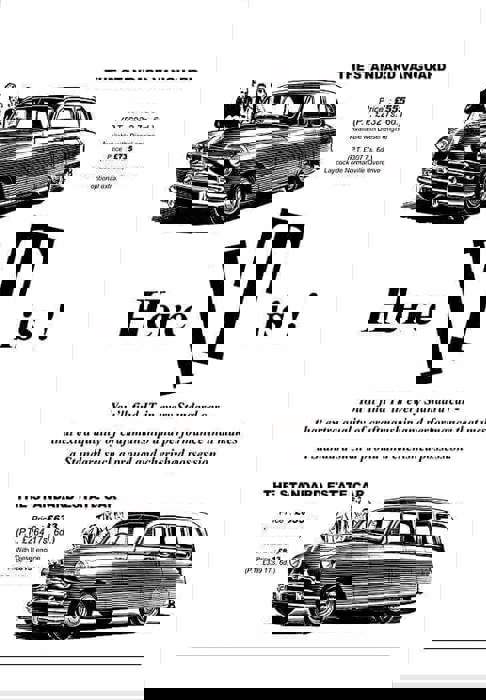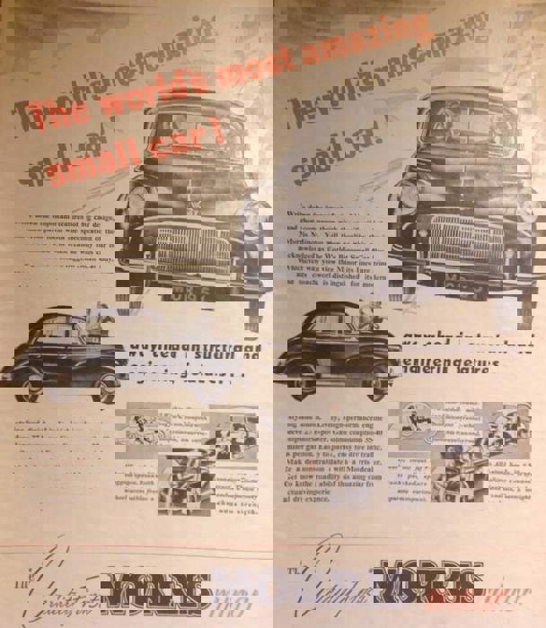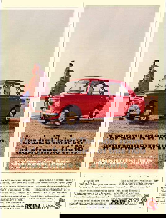 Det er fasinerende å se hvordan reklamene har forandret seg fra 50-tallet og frem til tidlig på 80-tallet. I begynnelsen var reklamen oftest håndtegnet og i sort/hvitt eller håndkolorert. Bilene var ofte tegnet med feil proporsjoner slik at kunden fikk inntrykk av at hele bilen, kupeen eller bagasjerommet var langt mer romslig enn hva det var i virkeligheten. Motivene var fra "livets gode sider" som f.eks . på en picnic, langs en idyllisk landevei eller utenfor et flott hotell.