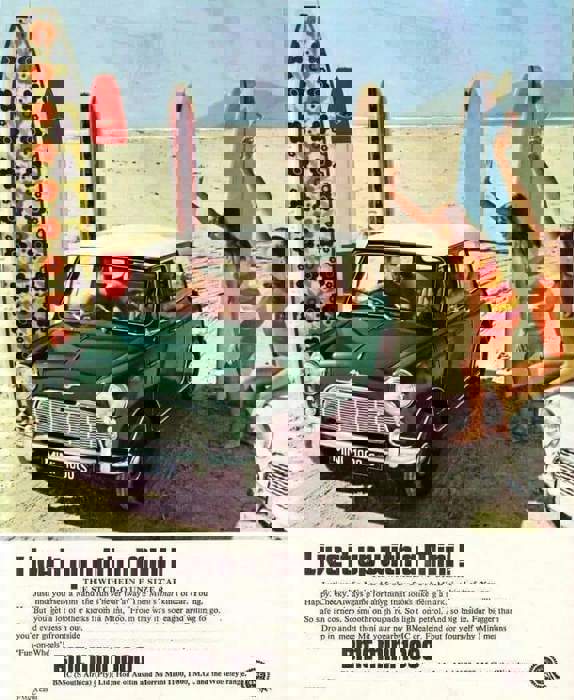 Det kan vel idag kanskje virke noe unaturlig å kople lettkledde og flotte damer mot noe så erketraust som en Austin Maxi!!